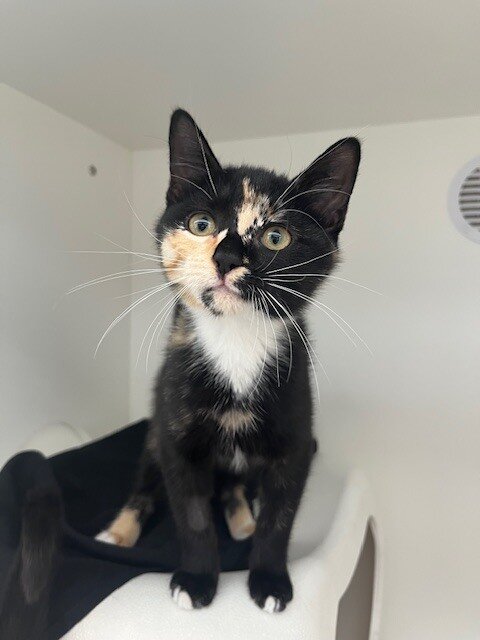 Hi, I’m Ember, a female Domestic Short Hair kitten, 3 months old. I’m curious, cuddly, and full of tiny purrs. With an average energy level, I love a good feather wand chase, a soft nap in a sunny spot, and quiet moments on a lap after play. My coat is warm and my heart is warmer. I’m great with people and I’m told I have no known issues around children, so I could be your kid-friendly companion. I’m still learning manners like where to scratch and how to settle, but I’m eager to learn and please. I’m looking for a forever home where I can grow into a loving partner—sharing adventures, gentle pets, and lots of smiles. If you want a sweet, adaptable kitten who will happily fit into family life, I’m Ember. Adopt me and let’s start our purr-filled journey together.