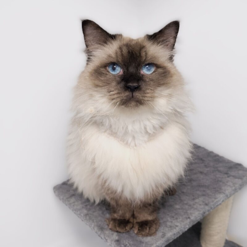 Hi, I’m Ebony. I’m a 7-year-old female Ragdoll who loves quiet, cozy days. My energy level is average, so I’m happiest lounging in sunbeams, curling on a soft blanket, and sharing gentle cuddles with my people. I’m affectionate and calm, the kind of cat who follows you from room to room and settles into your lap when you sit down. I have no known child-related issues, so I can adapt to homes with children who are kind and respectful. I’m not a fan of loud chaos, but I adore patient, loving households that give me a little time to warm up. As a Ragdoll, I’m known for my sweet temperament and plush coat. I enjoy brushing, friendly pets, and a cozy spot near a window for bird-watching. I’m content with other calm animals and I’m happiest when I’m part of the daily rhythm of a cozy home. If you’re seeking a steady, devoted friend who loves gentle companionship, I’d love to meet you. Ask about me at the shelter to arrange a visit and maybe we’ll start our new chapter together.