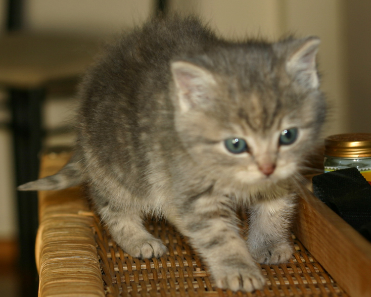 I am a sweet and affectionate little kitten who likes to sit on your shoulder and snuggle into your neck. I'm probably not purebred, as i was left at the pound anonymously, but i have all the features of a lovely british shorthair. I will not be released to adoption until i weigh 1 kg (probably age 10-12 weeks), but my foster family will hold me for an approved applicant