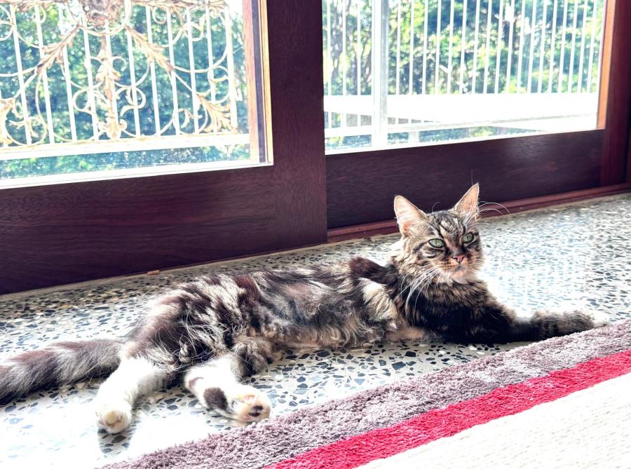 I'm two years old, love window perching, sun on my fur and snuggling up for pats with my foster mum. She's not too sure what I endured in my earlier life but can see I'm slowing coming out of my shyness. Although I'm still a bit timid with new people and nervous with loud noises, I'm learning to trust new friends more and receive love from them all.