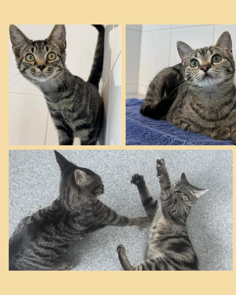 Introducing Bagel (14 weeks) and Casserole (7 months), a delightful pair of feline companions who are ready to charm their way into your heart—whether as a dynamic duo or individually. Their contrasting personalities make them a perfect match, and each brings their own special qualities.