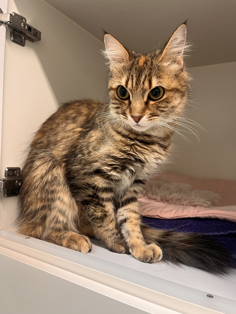 Looking for a sweet lap cat to complete your home? Jamilla is your girl. This gorgeous torbie lady is a total smooch monster who lives for cosy cuddles and being close to her people.