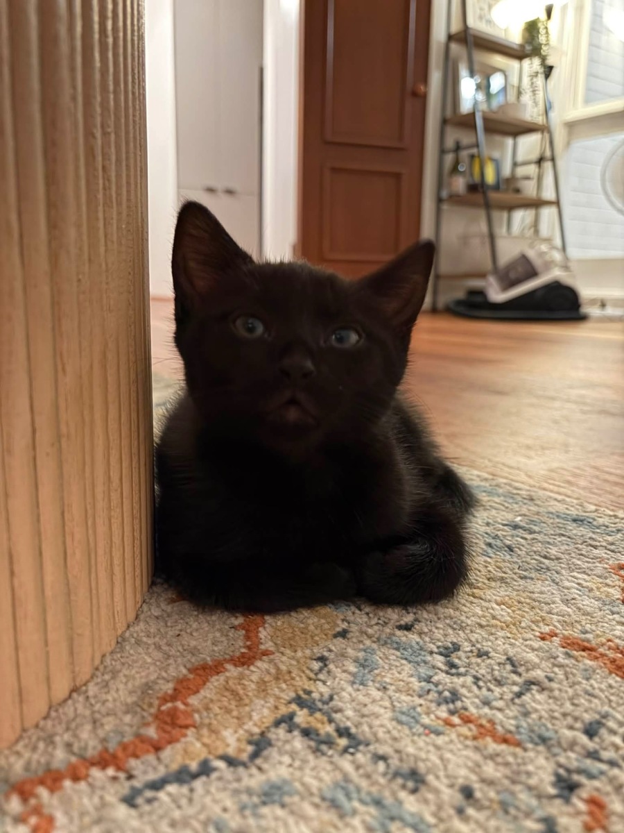 Dart is a beautiful little black kitten with the sweetest, softest nature and the most loving little heart. She is a total lap kitten who absolutely adores couch cuddles and will happily settle in close for as much affection as you’re willing to give.