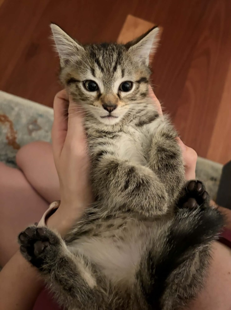 This tiny tabby boy has a huge heart and a 10/10 personality. He is the perfect mix of fun, sweetness, and affection – a kitten who will bring warmth, laughter, and companionship into any home lucky enough to have him.