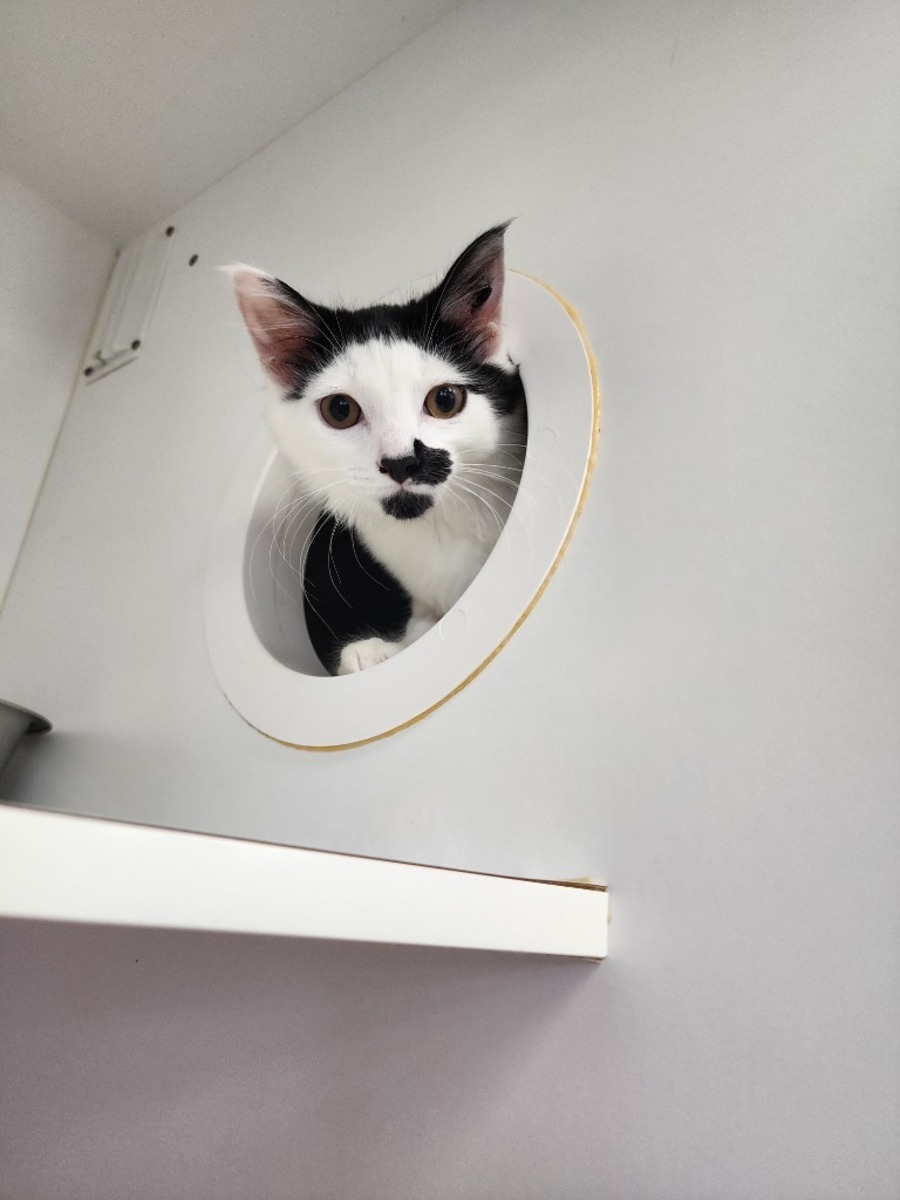 When Barry settles in, he transforms into a lively, playful companion who adores zooming around, chasing toys, and showing off his goofy side. He’s the kind of cat who will make you laugh with his antics one moment and melt your heart the next with a soft nuzzle or a slow blink from across the room.