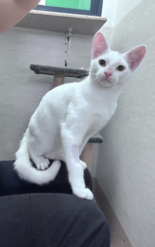 I’m curious, playful, and full of purrs. I love chasing feather wands, exploring new corners, and curling up in a warm lap after a big play session. I’m friendly with people and I’m learning good manners—litter trained and eager to please. I’d thrive in a cozy home that can give me daily playtime, quiet cuddles, and lots of love as I grow.