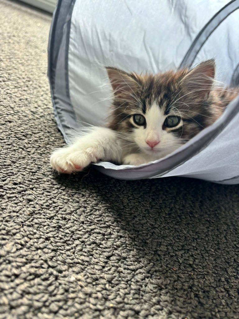 Curious and inquisitive, Maple loves to explore her surroundings and will happily wander around checking out anything new. She’s still building her confidence with pats and affection, but she’s making steady progress and shows a lot of potential as she continues to settle.