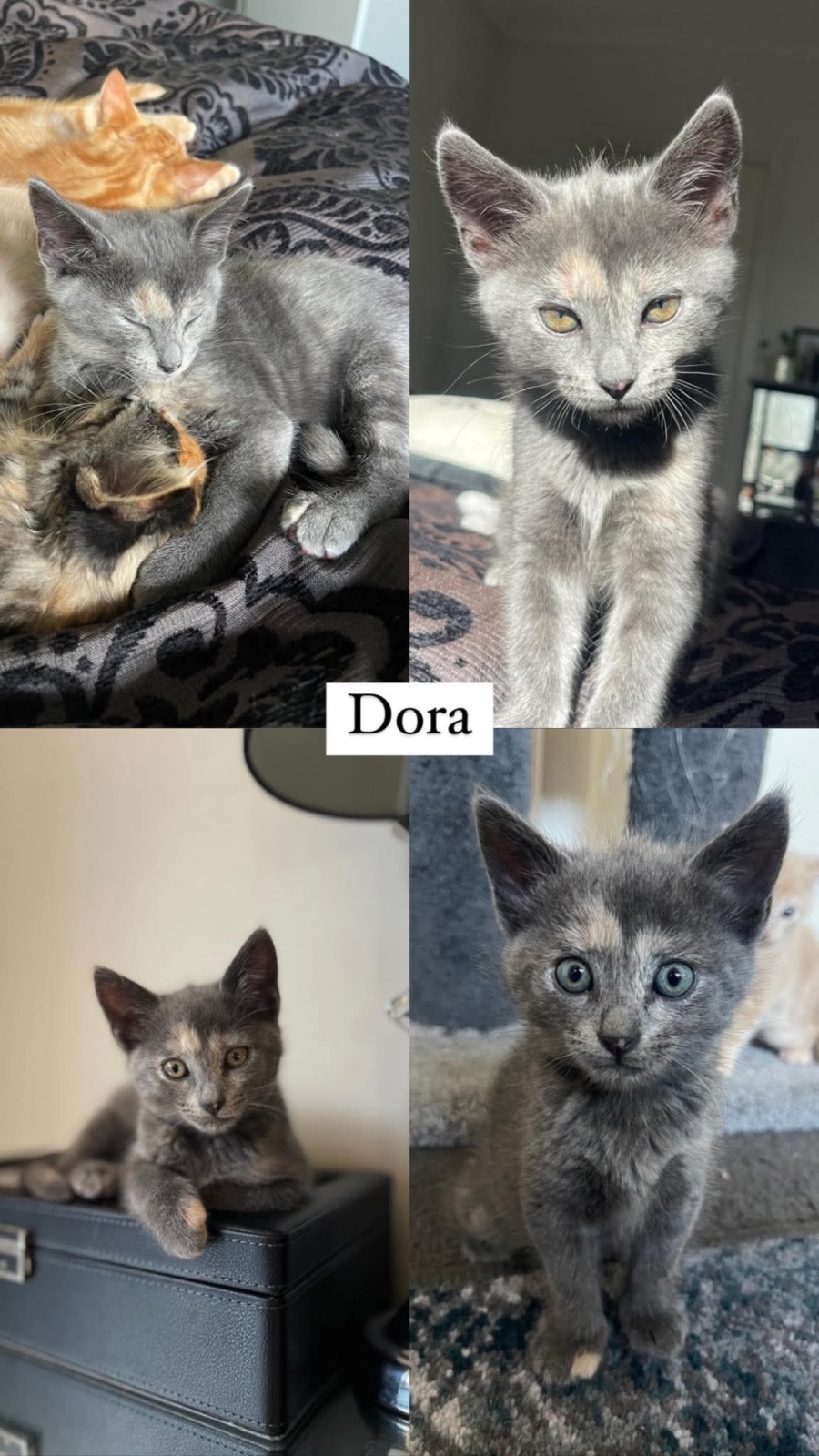 true to her name, she’s a curious little explorer with a heart of gold. Always by your side, she’ll follow you on every adventure (even if it’s just room to room), chatting away with the sweetest little meow. Equal parts shadow and sidekick, Dora is happiest when she’s close to her people, keeping you company every step of the way.