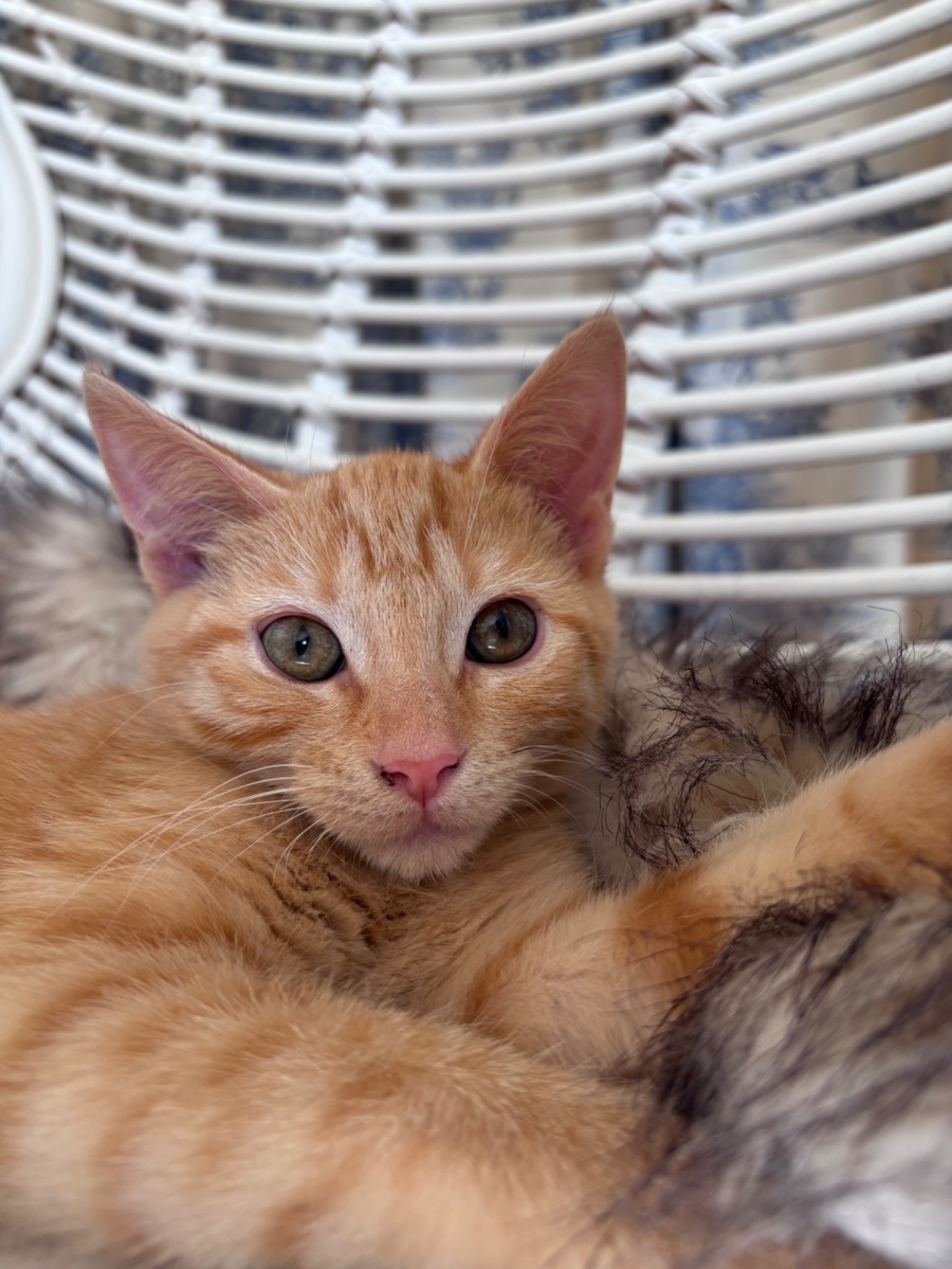 At just 11 weeks old, Peach is a little more reserved than her brothers, but once she feels safe, her playful and loving personality begins to shine. She enjoys her playtime, but she’s just as happy to sit back, observe, and take in the world at her own pace.