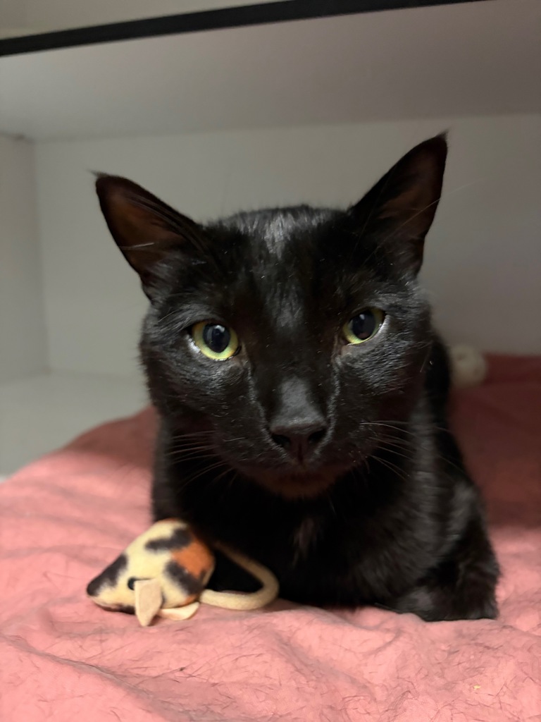 Hondo is a big gentle giant looking for the best home ever. He is just a sweet gentleman with a lot of personality. He loves to be with you and enjoys a good pat while he is walking past rubbing himself all over you. He is a beautiful black handsome fella his coat shines like a pool of coal. Hondo just wants the chance to be a cat and to do normal cat things. He would be more than happy to spend his days lazing around and finding out all your secrets that he promises to keep to himself. If you are looking to find your new best friend than don't wait pop in and meet him today so he can find his new loving family.