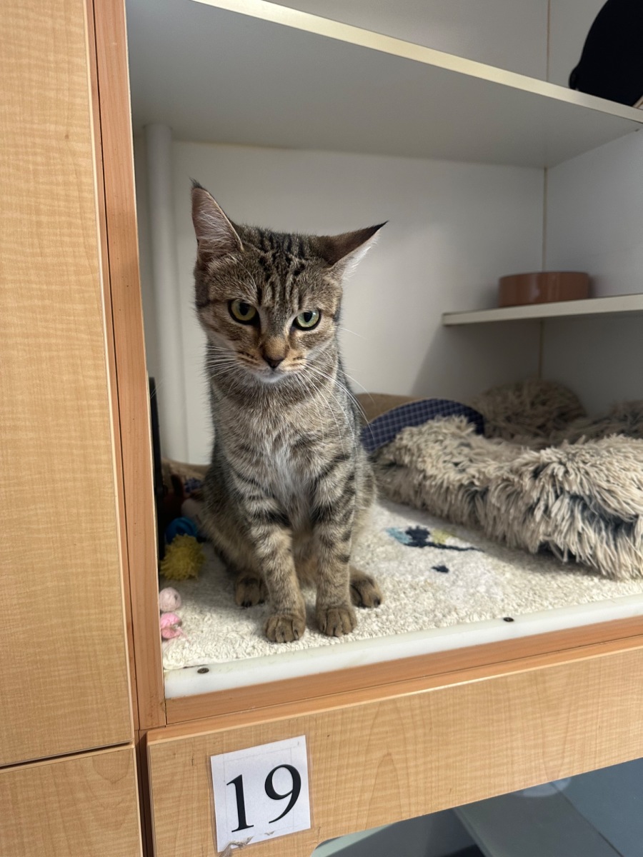 She enjoys being loved and doted on but also loves some relaxation time on her own, especially on her cardboard scratcher where she happily relaxes and watches the day go by.