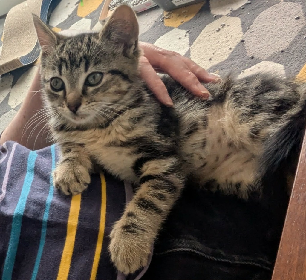 He is a lap cat if anyone is sitting down. He loves his sister, Fiona, and they would make an ideal lifelong pair but it isn't essential that they go together.