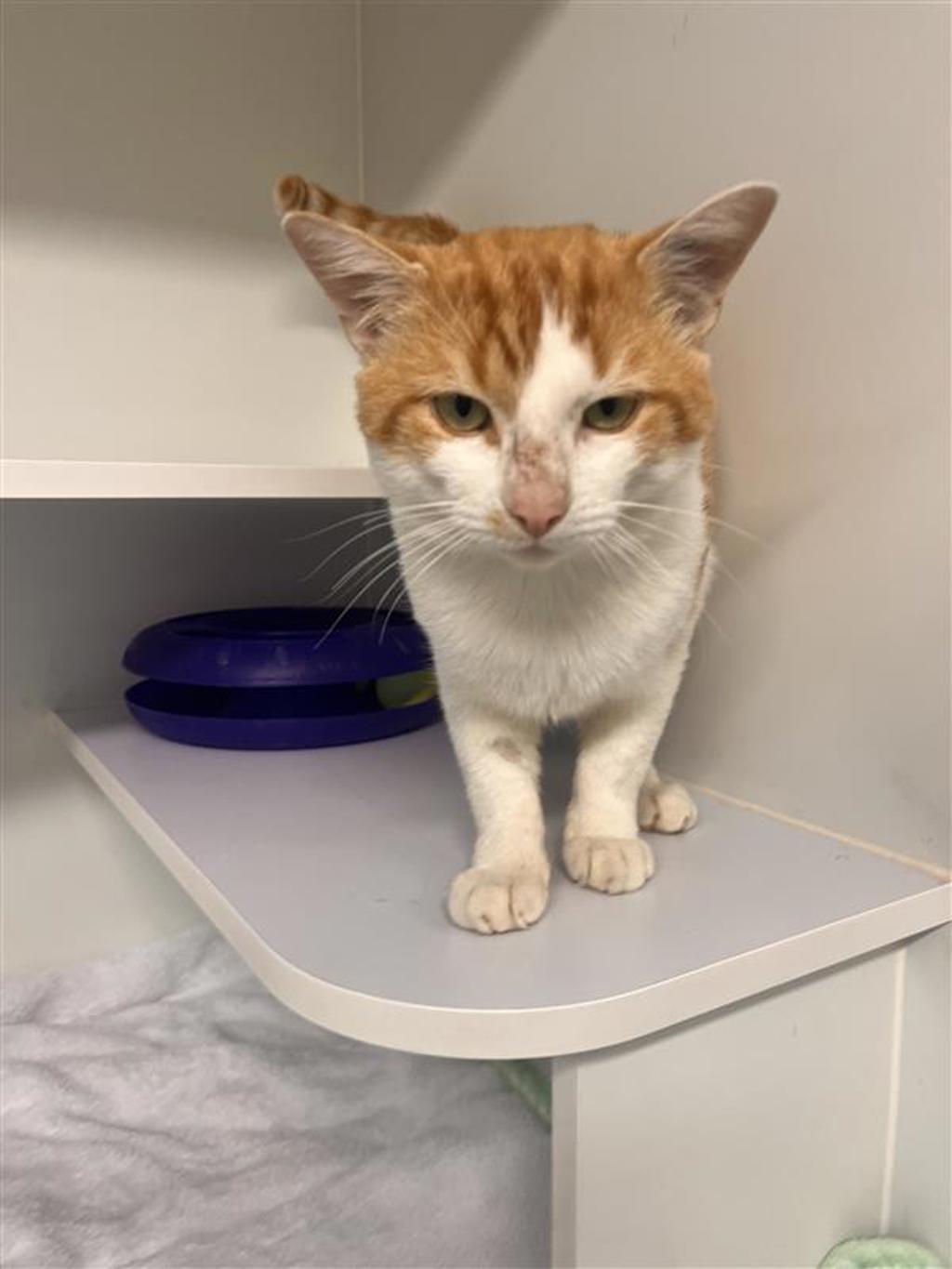 This 2-year-old ginger and white gentleman is a full-time love bug with a part-time career as your shadow. If you've ever dreamed of a cat who follows you from room to room like a fluffy little bodyguard, Crunchie is already packing his bags.