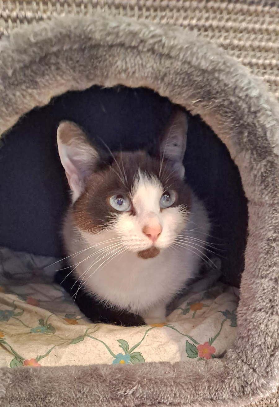 Ivy is a Seal Point Ragdoll mix. She has beautiful blue eyes typical of Ragdolls and certainly does make her stand out. Like Ivy, Ragdolls are known for their affectionate and docile behaviour.