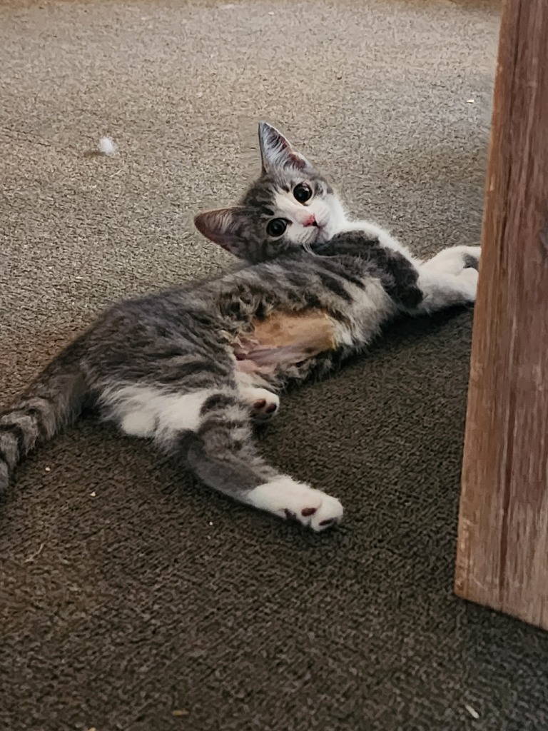 This sweet girl absolutely loves her food, her toys, and especially her people. Octavia is confident and adaptable, making her the perfect fit for either a home with another friendly kitty or as a spoiled solo cat.
