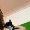 Quest is the prettiest little Tuxedo with a checkerboard face. She is a chatterbox and is always ready for a conversation and a cuddle. In fact I think the primary subject of many of her conversations might be please pick me up and love me.