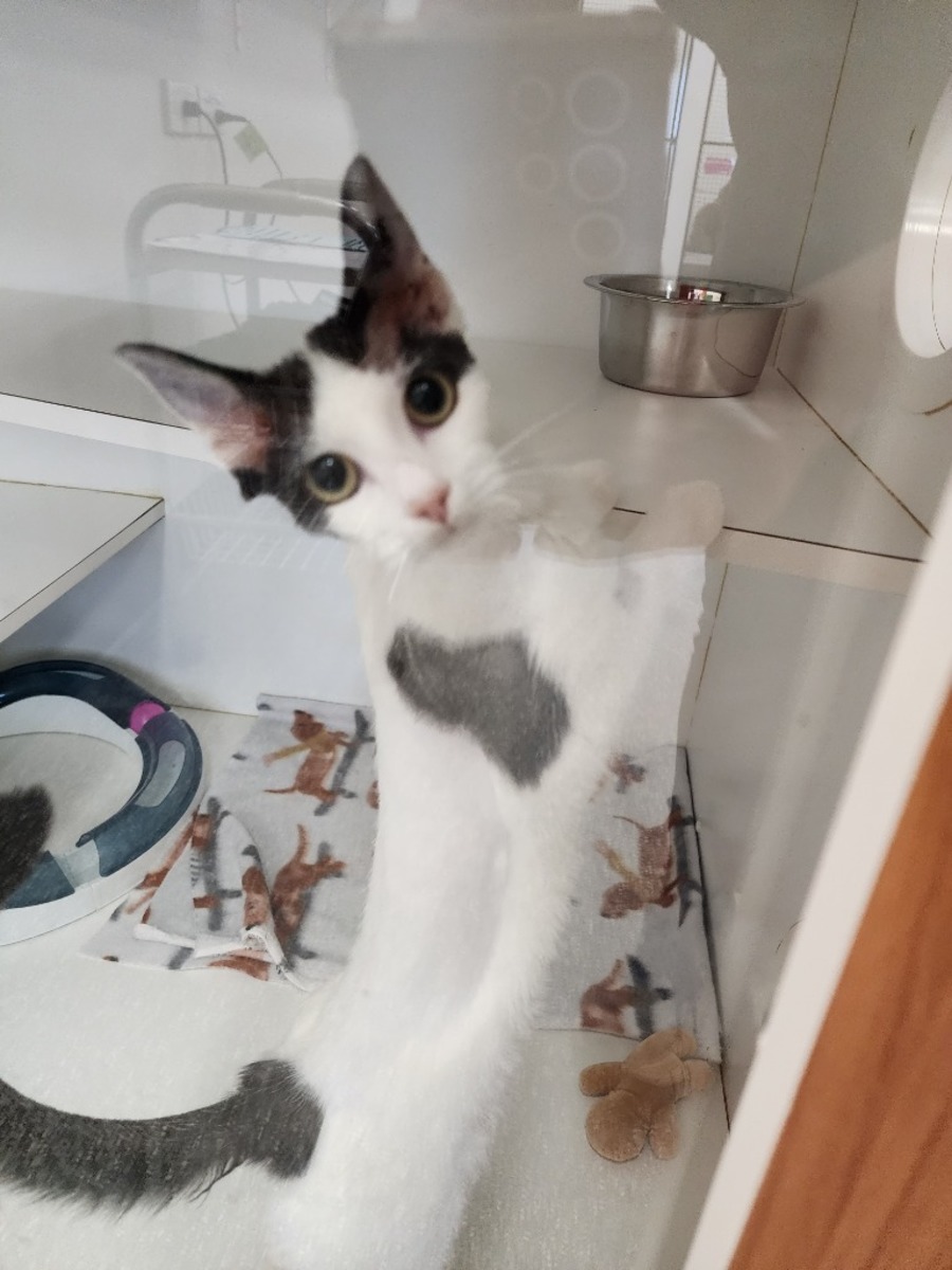 She may be okay with another cat given a slow, thoughtful introduction, but she doesn’t need a feline companion to thrive. Polly Pocket is perfectly happy being the star of the show. She’s also great with kids who understand how to interact gently with a spirited young cat.