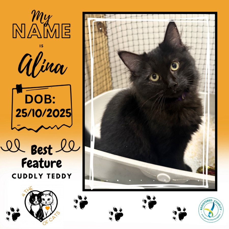 Meet Alina, the fluffy little teddy bear you didn’t know you needed. This gorgeous black kitten is all softness and sweetness, with a playful spark that’ll keep you smiling and a cuddly side that’ll melt your heart. Alina loves nothing more than a good snuggle session, but she’s equally happy batting toys around and making friends including the feline kind! If you’re looking for a devoted little companion who brings both fun and warmth to your home, Alina is your girl. 🖤