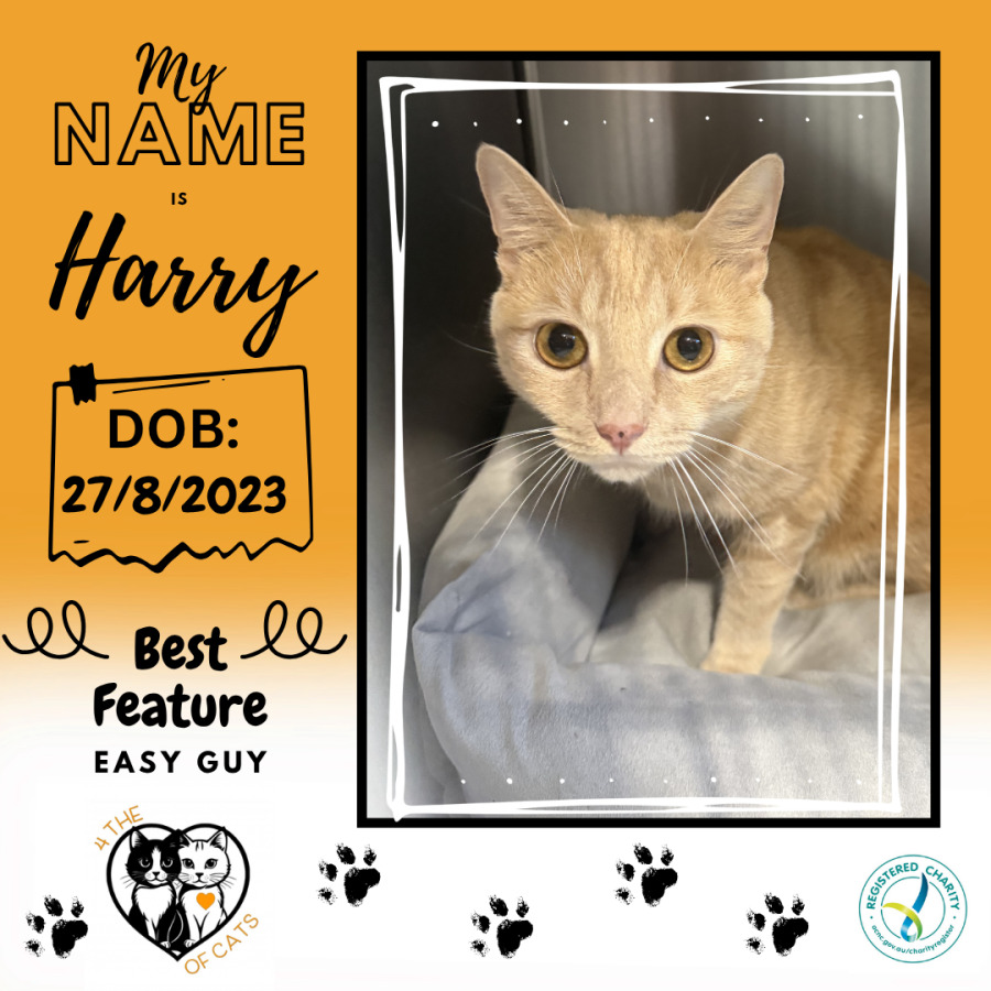 Meet Harry,the handsome ginger gentleman who makes everything look effortless. This golden boy is the definition of easy; calm, gentle, and sweet-natured, he moves through life at his own unhurried pace and is all the better for it. Harry is clean, loving, and wonderfully low-maintenance, the kind of cat who simply fits into your world and makes it warmer. Whether you’re after a quiet companion to share your evenings with or a steady, affectionate presence in your home, Harry is your guy. Laid-back never looked so good. 🧡