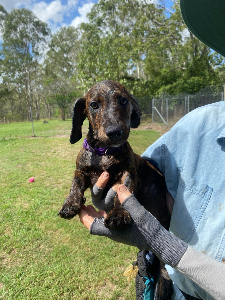 Pilvi is a happy confident young lass who is a curious mix of jack russell (mum) and dachshund x staffy (dad). She very much looks and has the dachshund nature being a little low rider with a big personality.