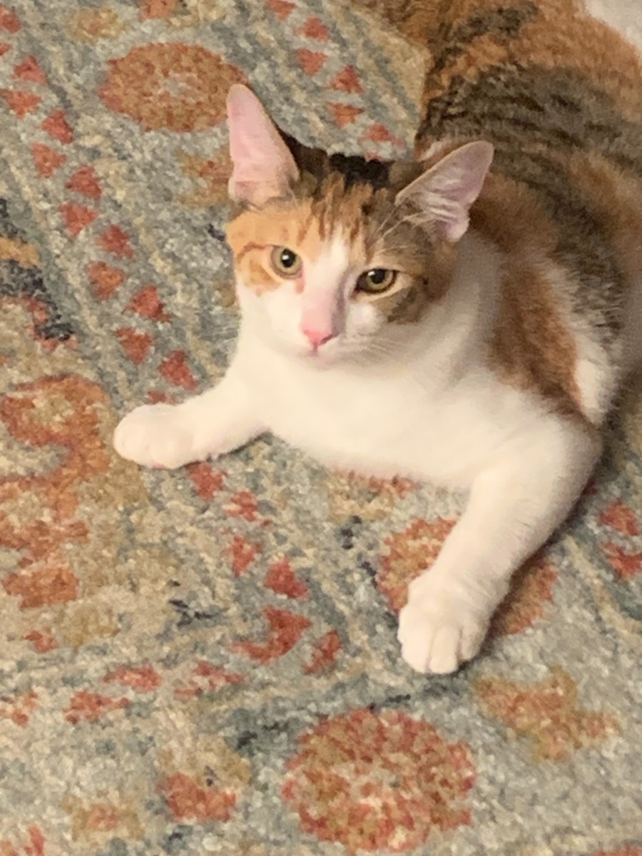 Dottie is a sweet, gentle little princess who divides her time between happily lounging in cozy spots and quietly exploring her surroundings. She has a soft, observant nature and will sometimes tuck herself away to watch the world go by from a safe distance. While she’s still a little unsure of humans, Dottie is making wonderful progress with her foster carers every day.