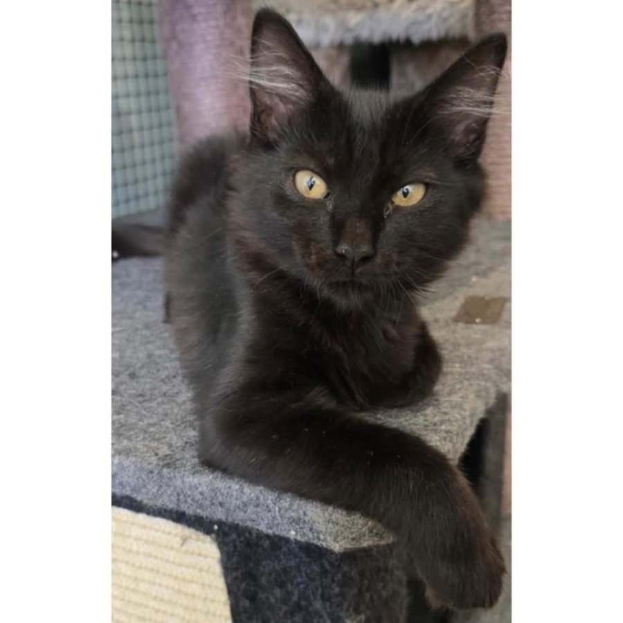 Sandy is a lively, playful kitten who is always on the move, chasing toys, running, and leaping with endless enthusiasm. Keeping her still for pats can be a challenge during zoomy time, but once she’s sleepy and relaxed, she transforms into a smoochy sweetheart who will happily purr away while you tickle her. Like her siblings Ocean, Sunny, Kelp, Tide, Reef, Salty and Shelly, she may look like a classic black kitten at first glance, but she’s full of delightful surprises and personality.
