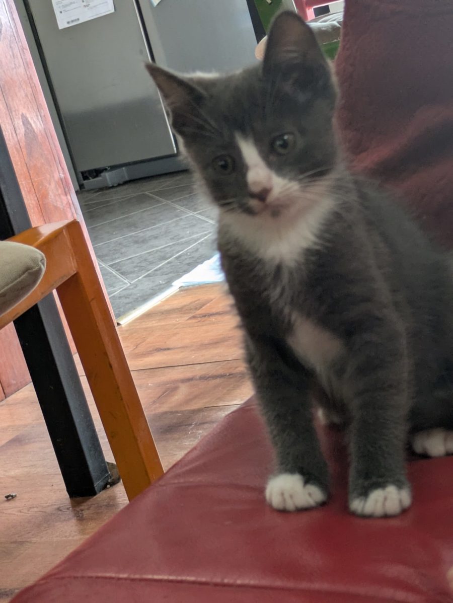 He's adventurous in other ways and is funny to watch, pouncing on and jumping over his mother and getting the zoomies. He loves running and jumping and climbing and watching you with his pretty eyes.