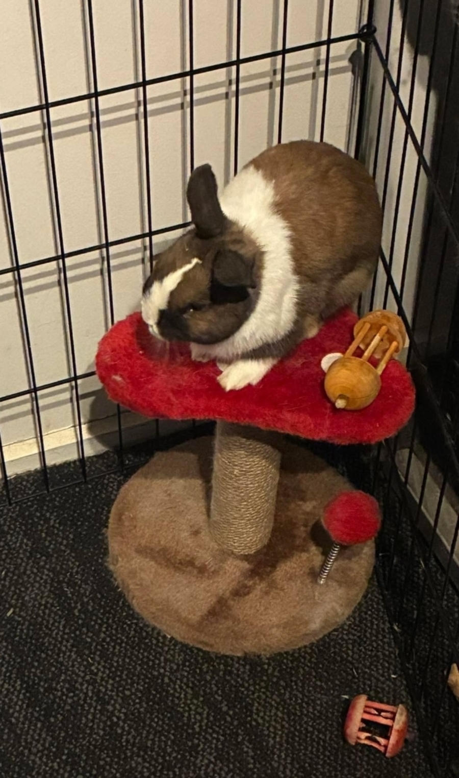 Meet Octavia, the adorable rabbit who's as charming as he is unique! Though he may be a bit timid when you first get to know him, Octavia quickly warms up to become an affectionate and playful companion. This delightful little bunny is sure to hop straight into your heart once he gets comfortable in his environment.