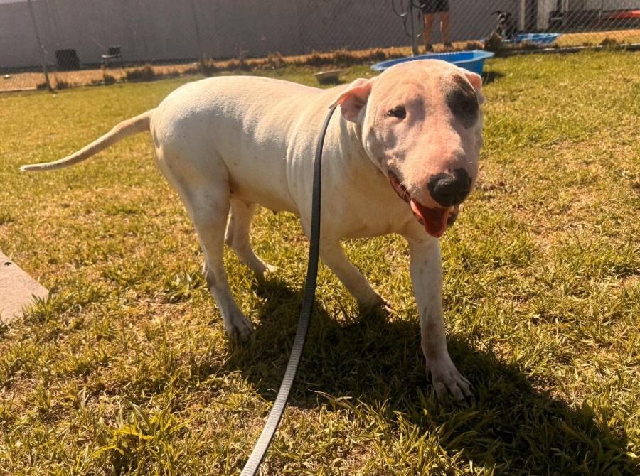 Patches is a precious 1-year-old Bull Terrier weighing in at 28 kg, bursting with personality and love for her people. This beautiful girl is incredibly people-motivated and thrives on attention, affection, and being part of the action. Patches would do best in a home with Bull breed experience and someone committed to giving her both the love and the boundaries she needs to thrive. She's a smart young dog who would benefit from a family willing to continue her training, particularly helping her build confidence and independence when spending time on her own. While Patches enjoys being social with other dogs out and about, she would be happiest as the only dog in the home due to some resource-guarding tendencies. She is also not suited to living with cats. Patches may do well with dog-savvy children aged 10+ who understand how to respectfully interact with dogs. Like many Bull Terriers, Patches has sensitive skin that will require ongoing management. She will need regular Malaseb baths and a suitable diet to help keep her skin healthy, so she's looking for an adopter who is happy to stay on top of this routine. Patches has also recently undergone entropion surgery and is recovering well, but her new family should be prepared to continue any recommended follow-up care as advised by their veterinarian. With the right home, Patches will be a loyal, affectionate, and entertaining companion who will quickly steal your heart. Could Patches be your new best friend? Apply online today to meet her! 🐶