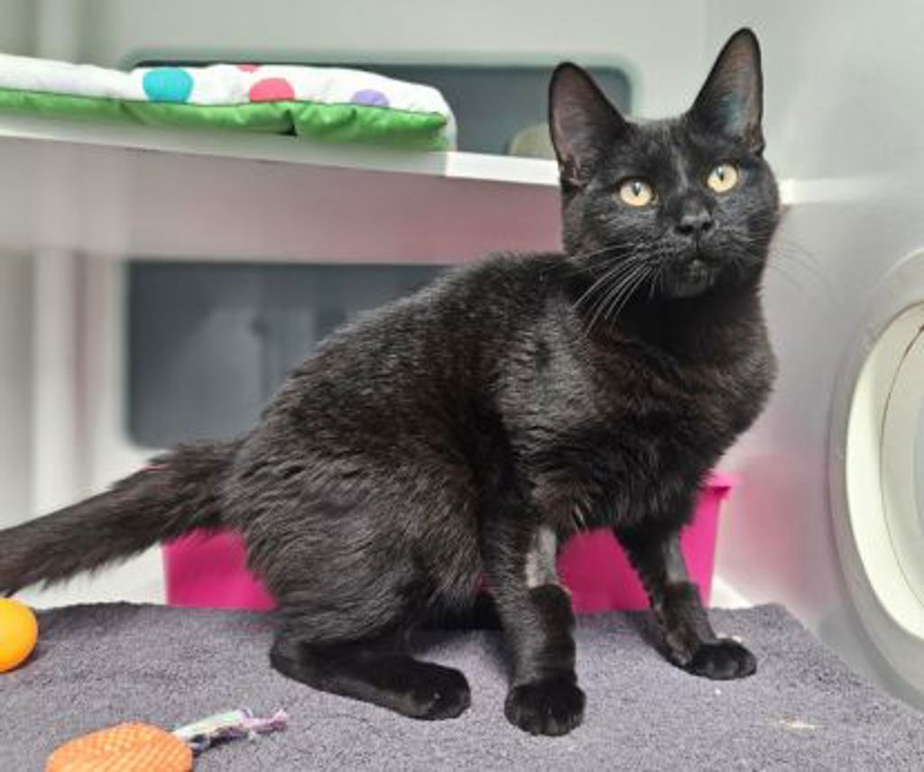 Minecraft has spent most of his life as a stray, but has been around humans since he was a small kitten and is very friendly. He has done incredibly well here at the shelter, showing his gentle personality right from the start. He was a little bit shy to start, and may need to some time to settle in and feel safe in his forever home, but once he does he will be a wonderful new family member. At around a year old, Minecraft is still energetic when he spots a toy to chase or cat tree to climb, but he's just as happy to spend most of his days curled up in a window watching the world go by, or soaking up chin scratches from his humans.