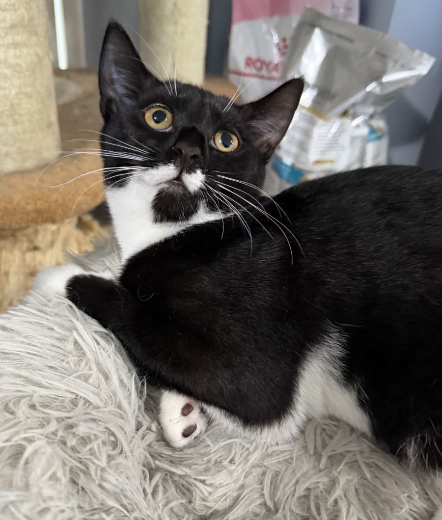 Jasper is a handsome black and white kitten with a curious personality. He was originally found abandoned on a property alongside his two siblings, where a kind homeowner cared for them for several weeks before they were surrendered into care to find loving forever homes.
