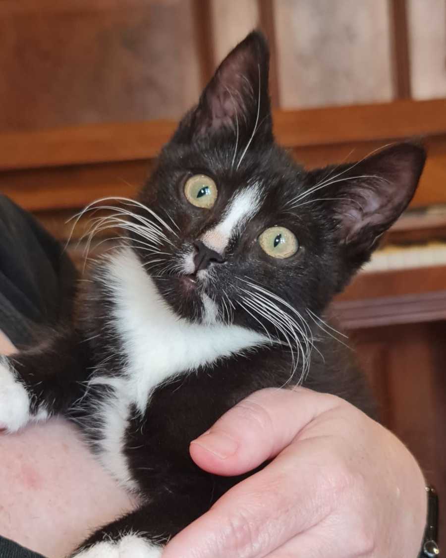 But he is the sweetest little kitten. He's always ready for a cuddle, and loves sitting in your arms. Once he gets comfortable, he could stay there all day! It's nearly impossible not to fall in love with him.