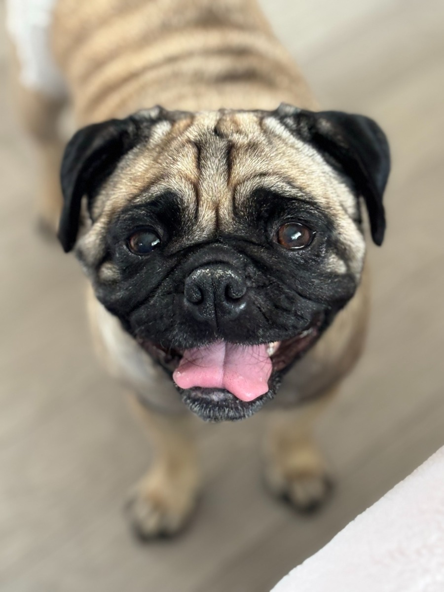 Lily is pure joy in pug form. Lily is 4 years old and affectionately known as Silly Billy Lily. She’ll have you laughing daily with her goofy, high-energy antics and playful personality. Lily is a sweet, loving girl who just wants to be by your side and feel safe and loved.