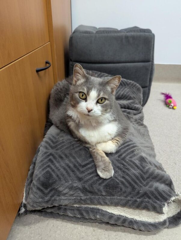 Hello there, Gracie is the definition of gentle sweetness wrapped in fur. She’s a senior soul with a heart that still runs on affection, and if love were calories, she’d be delightfully overqualified. Smooches are her love language—she leans into them, asks for them, and repays them with soft purrs and slow blinks that feel like tiny thank-yous. Her signature head tilt gives her a permanently curious, slightly whimsical look—like she’s always listening closely or considering something kind. It makes her seem extra thoughtful, extra tender, and somehow even more lovable. When she looks up at you like that, it’s impossible not to melt.