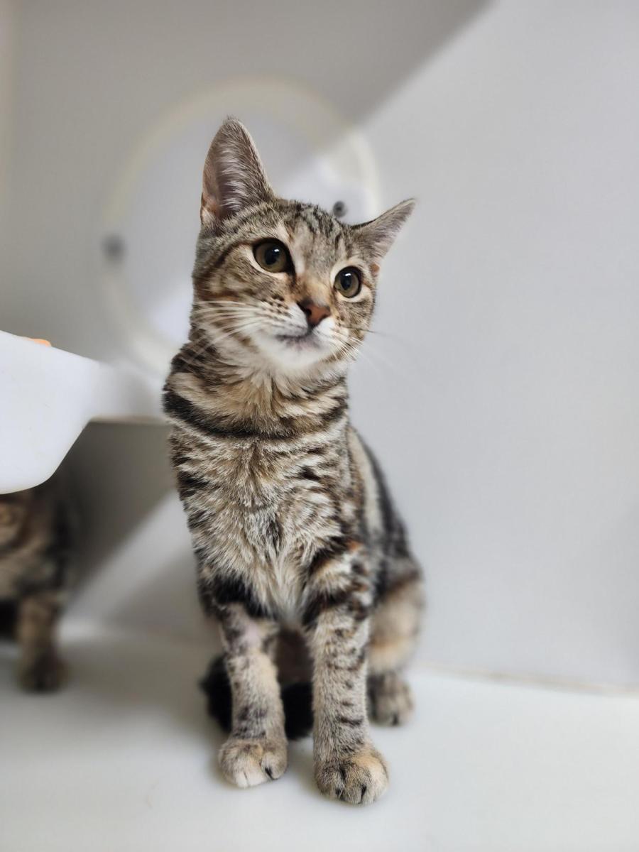 Panini gets along well with other cats and is happy to share her space, often observing from a distance. She prefers a relaxed environment where she can approach for pats and affection on her own terms.