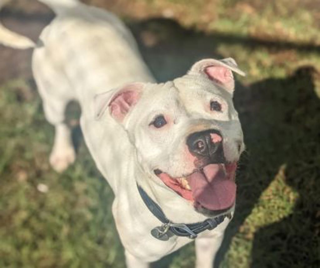 I've got what people call staffy energy, which I think is just a fancy way of saying I love HARD and I play EVEN HARDER. I'm sweet, silly, and absolutely obsessed with my people. If you're sitting down? I'm on you. Standing up? I'm jumping at you. Walking away? I'm coming with speed. I don't just exist near you, I experience you at full volume.