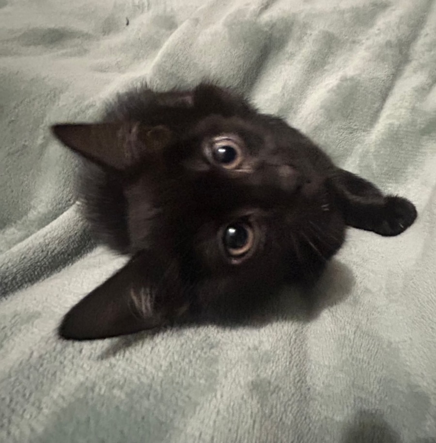 Sleek and all black, she carries an air of quiet mystery- a tiny whirlwind of fur with a heart as big as the galaxy, moving through the world with endless curiosity and calm, deliberate energy. She pounces on anything that moves (or doesn't), batting at invisible things only she can see, and exploring every nook and cranny as though cataloguing secrets.