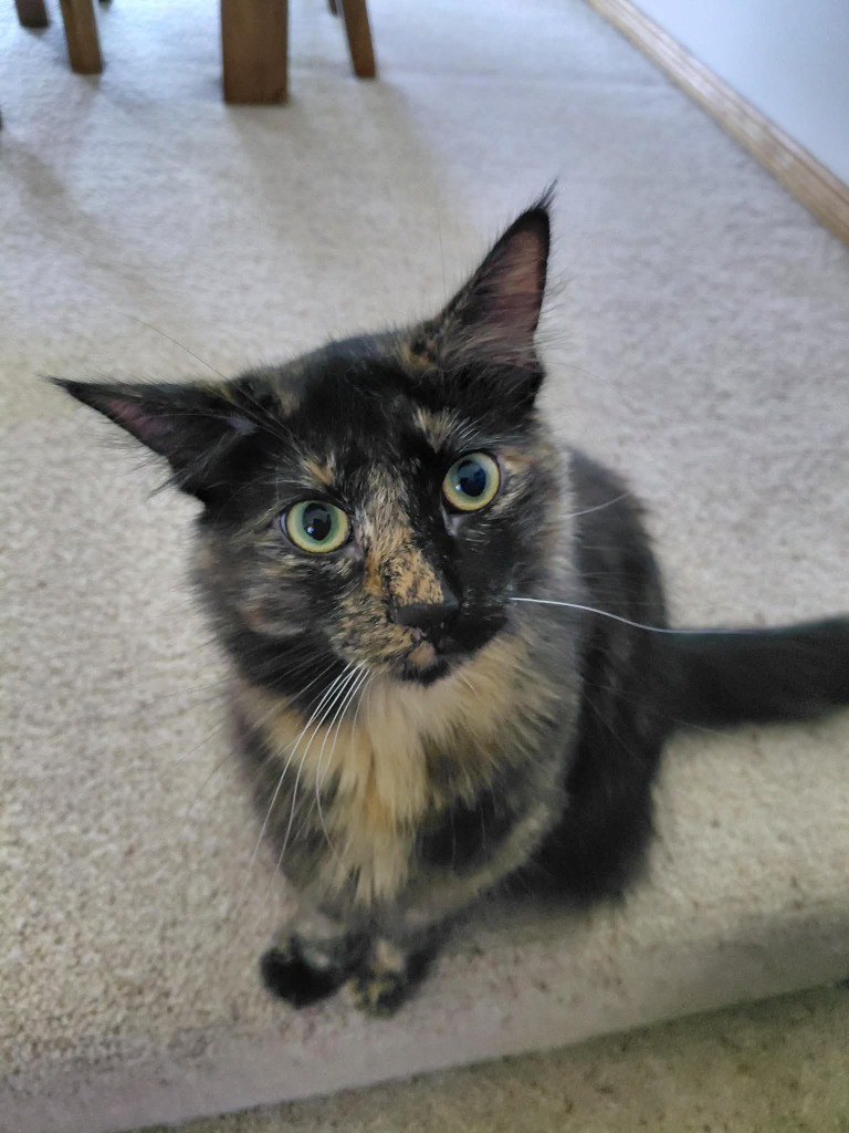 Katie is a playful, curious kitty cat who loves her toys and other fur siblings! She can be shy in new environments and with strangers so her new humans will need to let her settle in before they earn her trust and bond with her. Once she is comfortable, she loves getting pats from her humans and lets them know when she's had enough.She is great with dogs and would love another cat friend in her forever home.