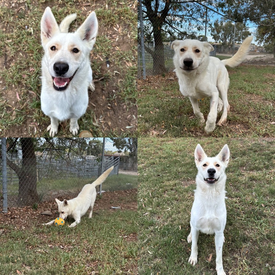 Sheba is a beautiful 3-year-old white German Shepherd x Swiss Shepherd with a loving personality and plenty of energy to share. She is fully house trained and has wonderful manners, making her an easy addition to the right home.