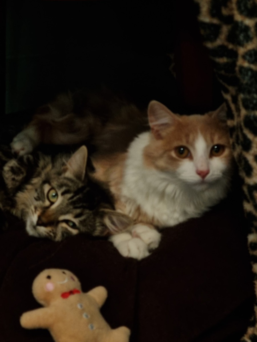 Aslan is a quiet but curious little explorer who loves playtime and discovering new corners of the house—especially with Jadis leading the way. Whether they’re chasing toys, investigating their surroundings, or snuggling up together for a nap, their bond is heart-melting and strong.