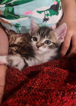 Lulu is playful without being chaotic, affectionate without being clingy, and endlessly endearing. She loves curling up with her brothers, exploring new spaces, and snuggling into warm laps. Her mix of courage, sweetness, and charm makes her a truly special little kitten.