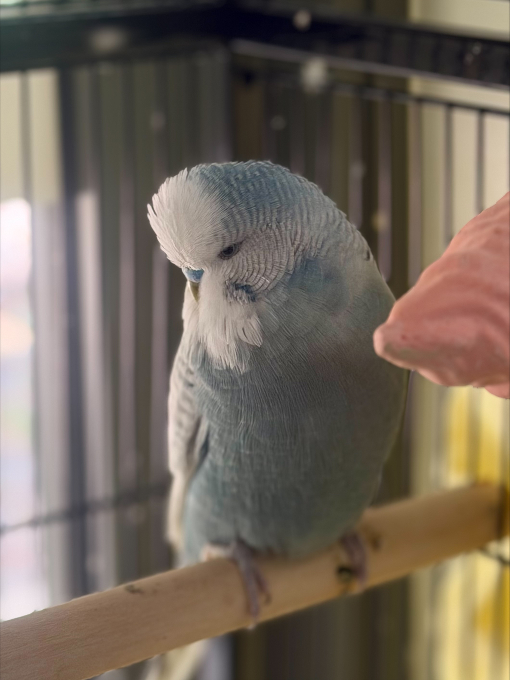 Hi there! We're Storm and Gouda! A pair of curious and friendly budgies who love to explore and chat. Our days are filled with delightful chirps and exploring our surroundings. We love to swing on our toys and watch the world go by. We would love to share our cheerful personality with a family who enjoys lively companionship. We love interacting with you, but we prefer our independence in our cage. We are a bonded pair and must be adopted together, we also come with our cage that is full of our favourite toys!