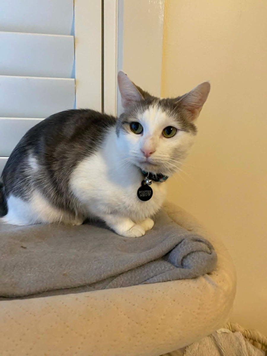 She enjoys the simple comforts in life—a cosy cat cave, a good perch on her cat tree, and being close to her favourite people. While she was once unsure about dogs, she’s learning to tolerate their noisy antics… as long as they keep a respectful distance!