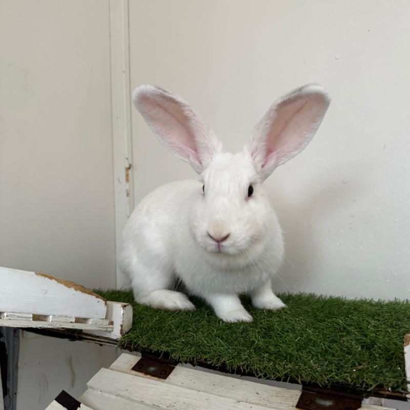 Chamomile blossoms with patience, understanding, and plenty of room to hop and stretch those long legs. A spacious setup with cozy hidey holes is essential for helping her feel secure, as having safe spots to retreat to builds her confidence. With time and consistency, she’ll grow more relaxed and curious, showing her sweet personality in quiet, rewarding ways.