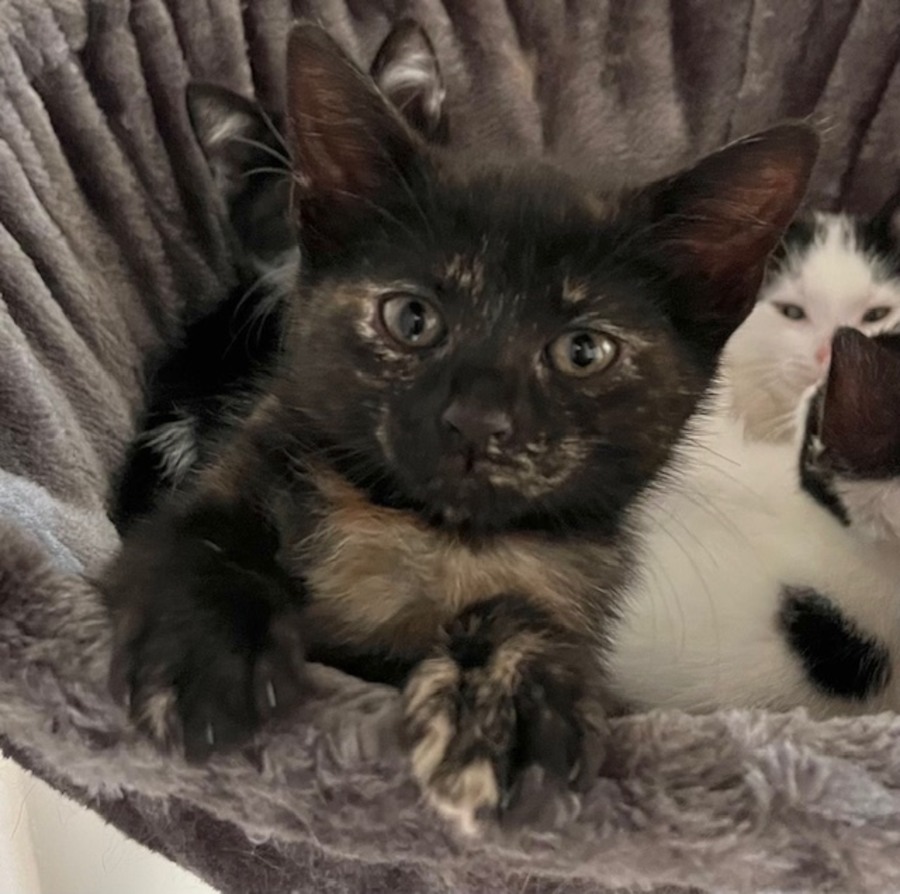 Iris adores her siblings (Clarabelle, Daphne, and Cooper) and thrives alongside other cats. She’d be happiest in a home with a friendly feline friend or one of her siblings. 🐾🤝🐾