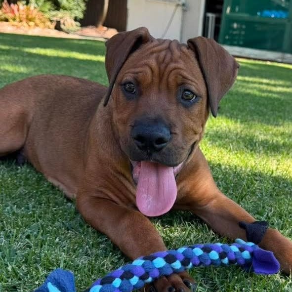 Presley is an absolute beauty of a big chunky pup. He is friendly, pretty placid and loves cuddles. He may be big but this is no guard dog! Presley is ready to join a caring and active family who understands the value of socialisation, training and age-appropriate exercise. He's a big boy and a foundation of good manners will set him up to mature into a friendly, confident and happy adult dog.