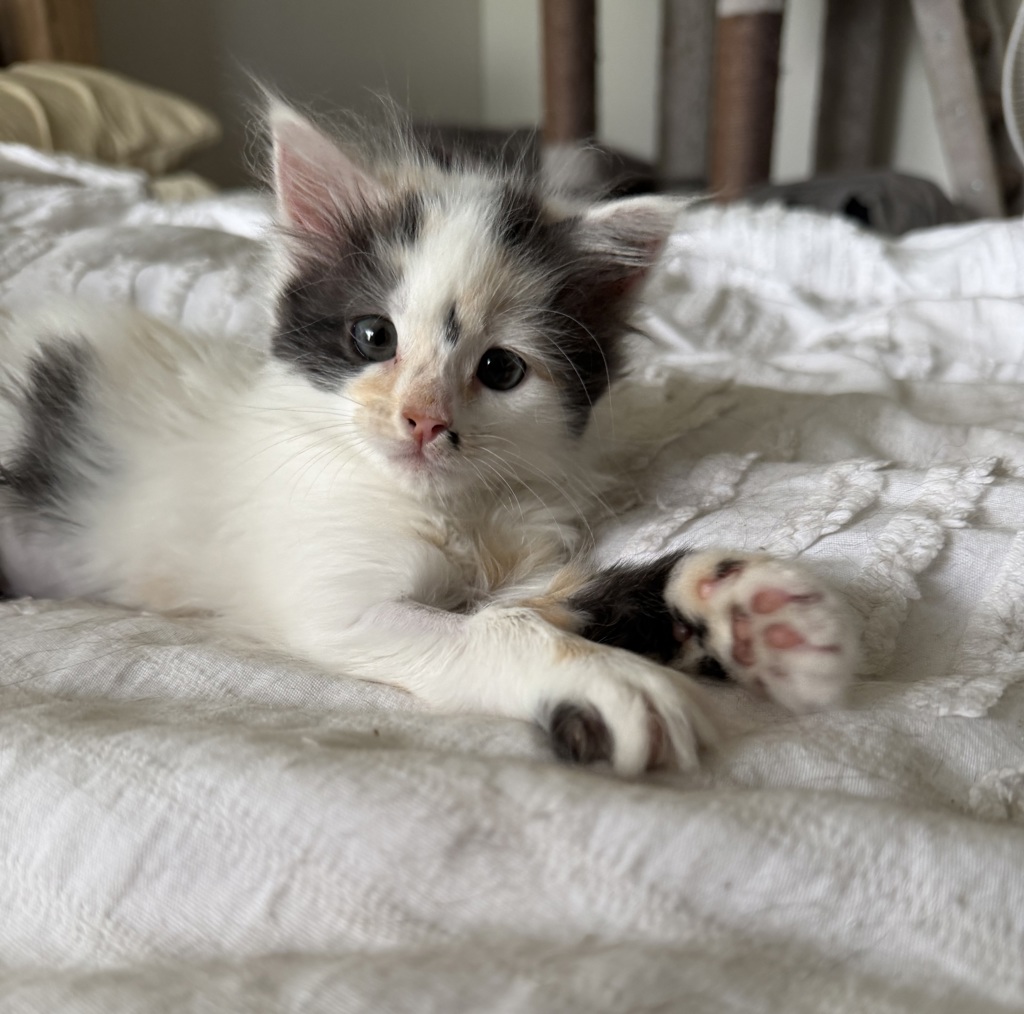 Stella is a cheeky, high-energy kitten who brings fun wherever she goes. She loves to play, especially chasing balls and going wild for her spring toys, and would thrive in a home with another cat to keep her company.