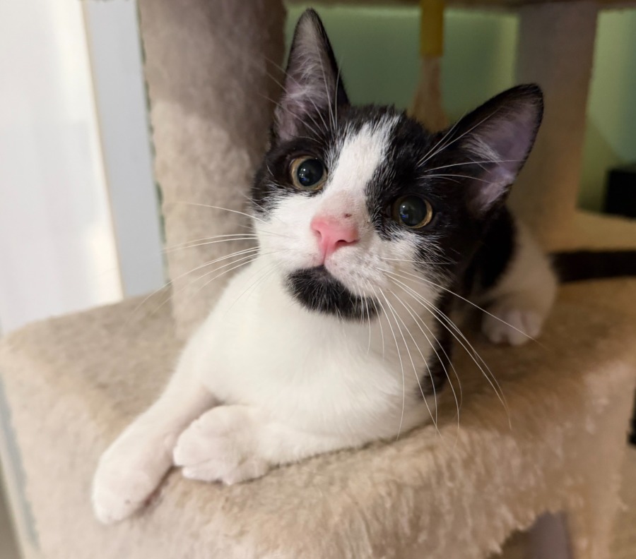 Meet Achilles. After a rough start to life, he has grown into a pretty black and white little boy with interesting markings and a big personality. He loves to play and explore, and you will find toys all over your house - but he loves playing a game with you most of all. He loves coming to sit with you for a cuddle in front of the tv or anywhere, he insists on a cuddle if you sit down. He loves when people pop over and is learning that they also have cuddles for him. A real food enthusiast he is always up for a treat stick. He is a clean, well behaved and polite little boy looking for his forever home.