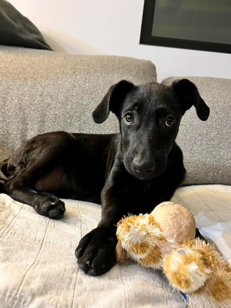 She is very social with other dogs and warms up quickly, especially when it comes to playtime. She loves to wrestle and interact, making her a great companion for a friendly resident dog. At home, she is your typical happy puppy—playful, curious, and full of energy—but she also has a soft, cuddly side and absolutely loves snuggling up on the couch or laying close to her people. She especially loves playing fetch and has already learnt to bring the ball back and drop it, which is a great sign of both her intelligence and willingness to engage.