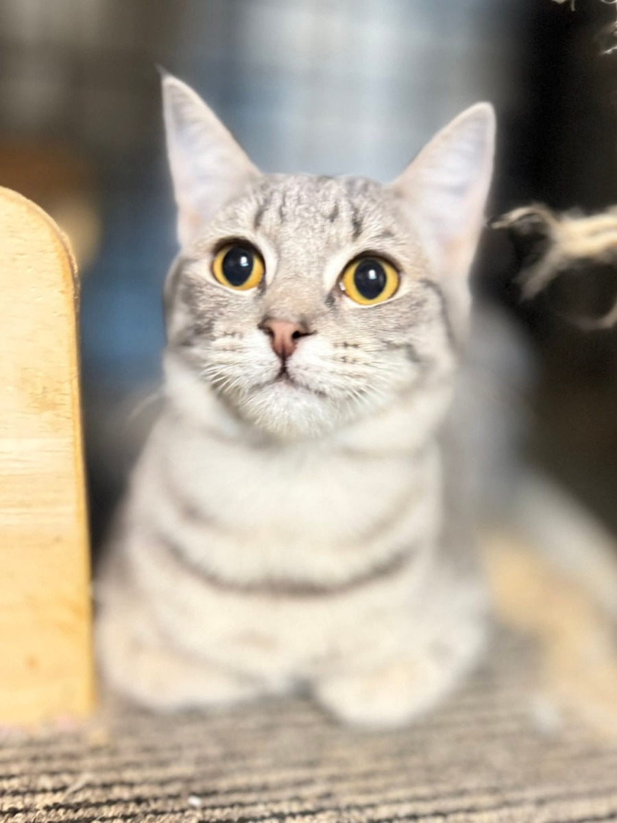 I’m a 4-month-old grey tabby girl with a soft, beautiful coat and a gentle soul. I can be a little shy at first and might take some time to feel safe, but once I do, I’ll quietly make my way into your heart.
